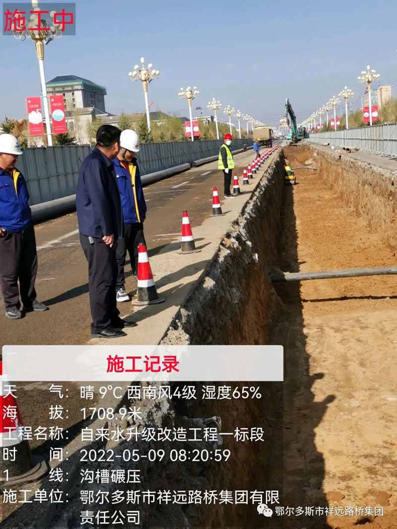 察右中旗科布爾鎮(zhèn)自來水升級改造工程項目(鑲蘭大街給水工程)主要工程數(shù)量: PE400管道2317米、 PE315管道2145米、PE200管道119米、 PE160管道255米。各類檢查井79座,拆除路面25961.42m2,鋪筑瀝青混凝土路面25961.42m2,挖溝槽土方39483.31m3,回填方31394.71m3。